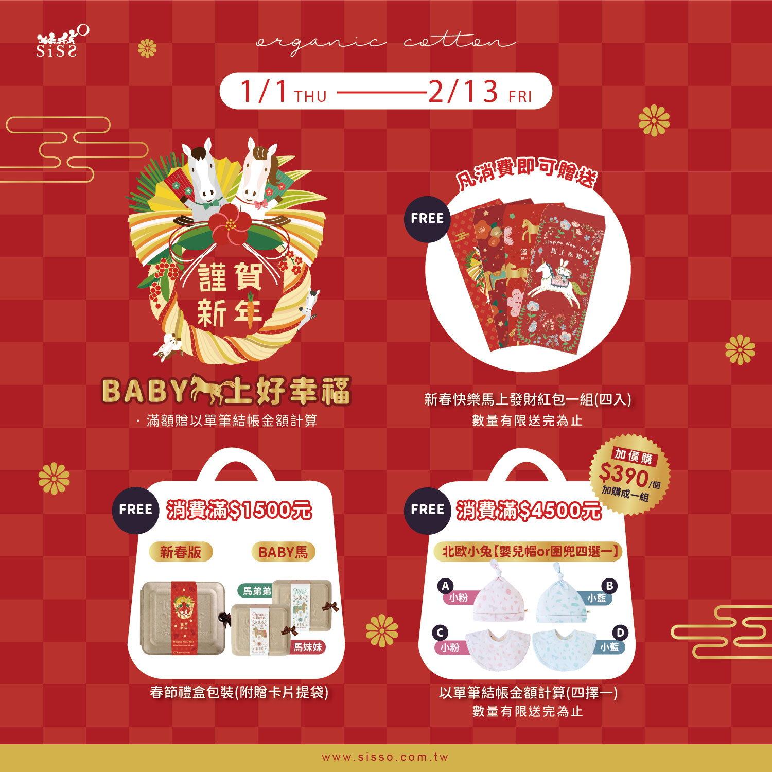 ★凡消費【贈】新春快樂馬上發財紅包一組(四入)