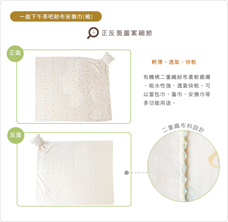 【SISSO有機棉】一起下午茶吧熊紗布安撫巾(被)