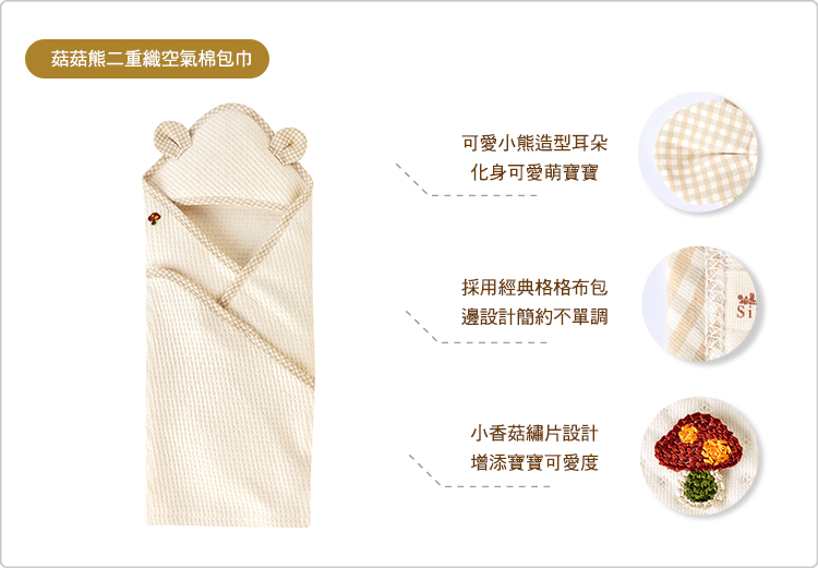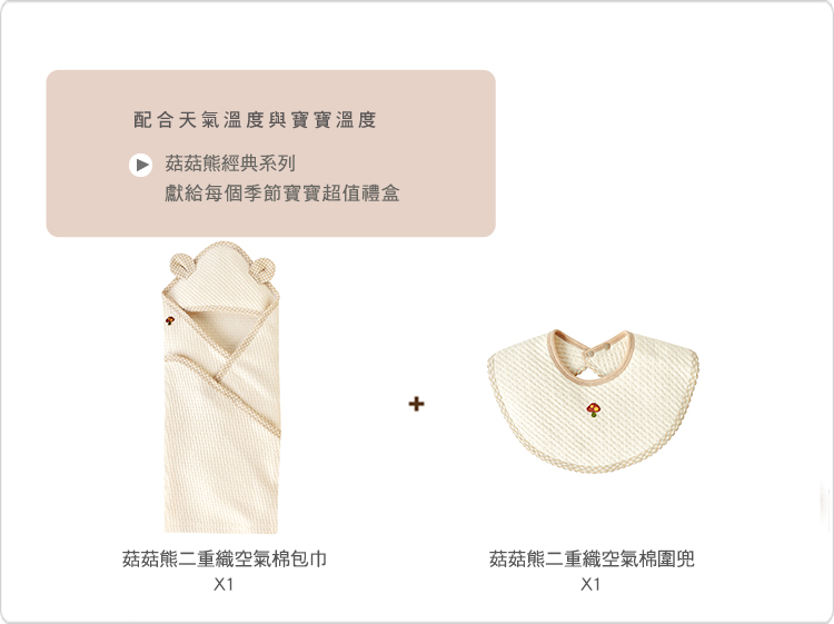 【SISSO有機棉】菇菇熊二重織空氣棉包巾圍兜禮盒