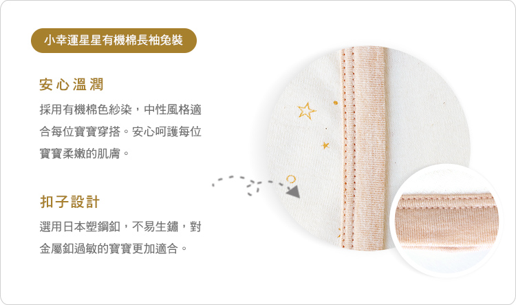 【SISSO有機棉】小幸運星星有機棉長袖兔裝 6M 12M
