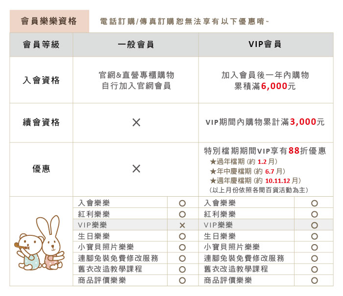 .VIP會員使用期限從VIP資格生效之訂單下訂日起,為期一年。如逾期系統將不另行通知。